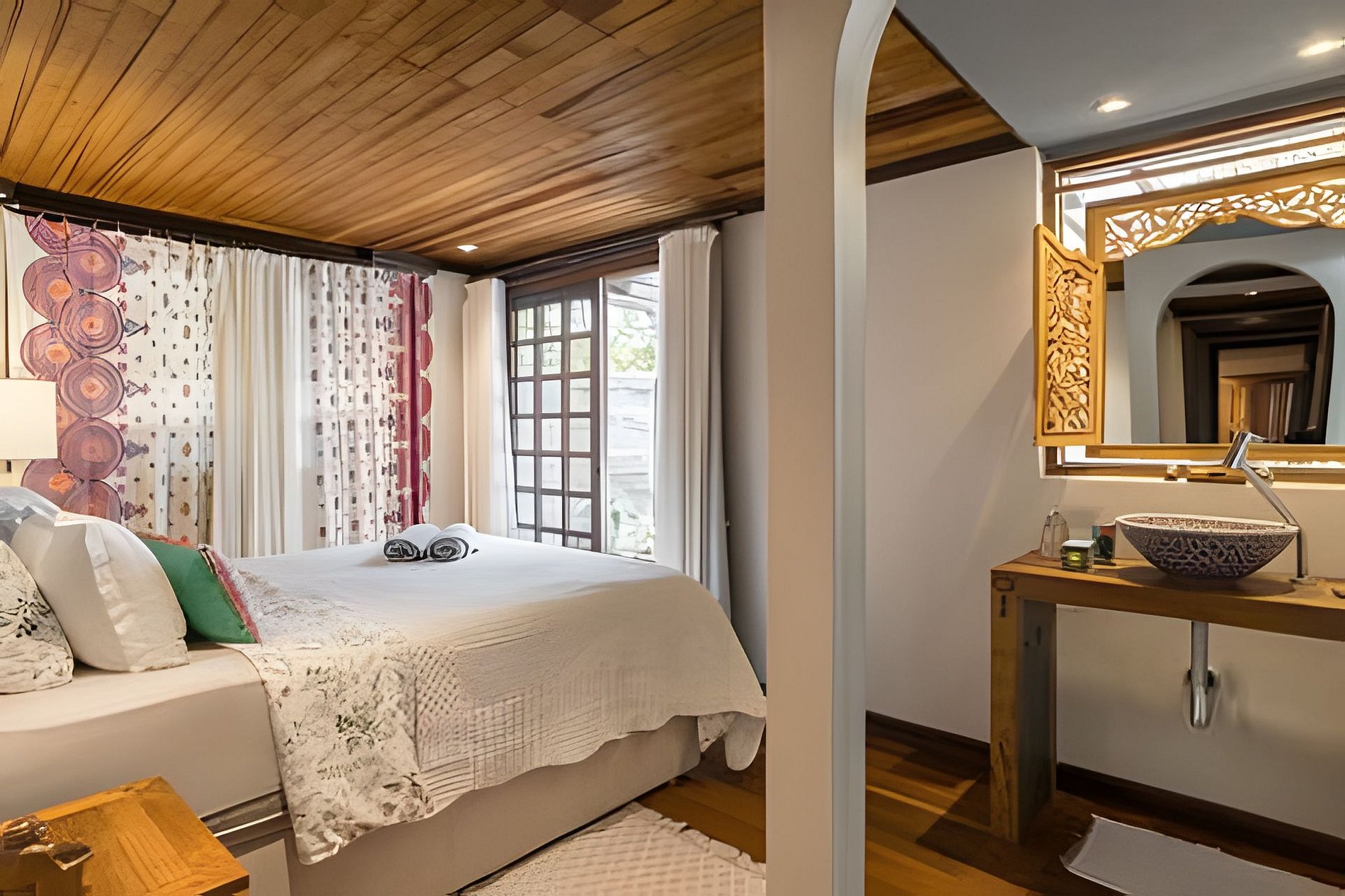 A Casa Thai possui 3 quartos, 3 banheiros, varanda para jardim, cozinha integrada e espaços amplos, cheios de estilo e com decoração inspirada na Tailândia, criando ambientes aconchegantes e cheios de charme.