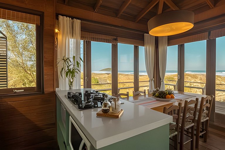 Uma casa-palafita e pé na areia, de frente pro Oceano Atlântico! Você vai se sentir no convés de um navio. Um deck com 360º permite uma vista incrível da região da Barra da Ibiraquera. Com o nascer do sol no mar e o poente iluminando as dunas, montanhas e a Lagoa, é um pouso perfeito para relaxar, observar...e se deixar levar. A casa está localizada na parte mais tranquila e sossegada da praia, e com 10 minutos de caminhada você chega fácil no centrinho da Barra!