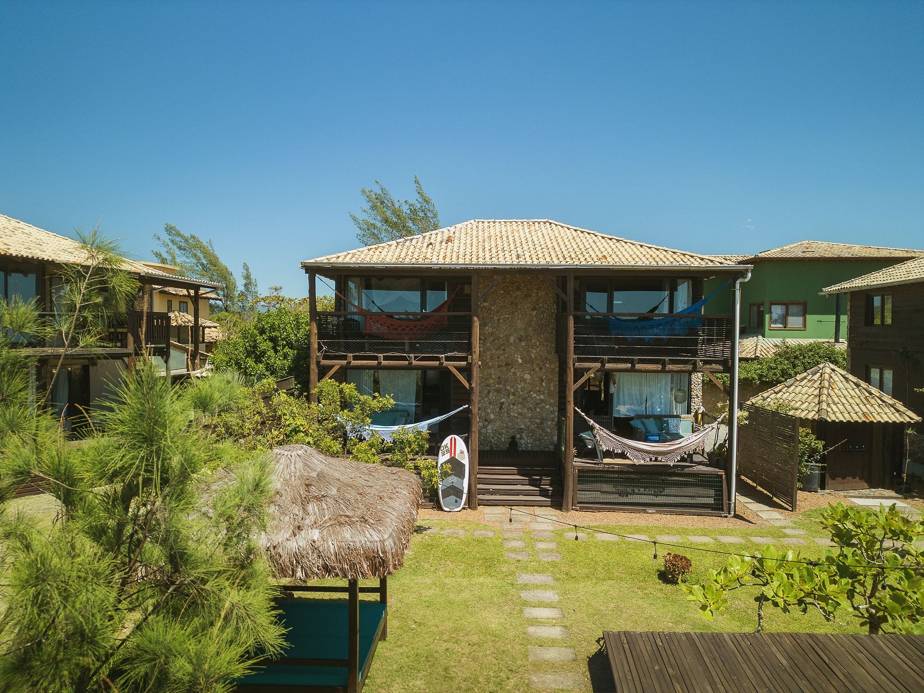 A Villa Sayuri é composta de 4 Villas frente ao mar. Cada villa tem 2 andares, sendo o primeiro andar varanda para o jardim, sala, cozinha integrada e banheiro, e o segundo andar dois quartos varanda frente ao mar e 1 banheiro.