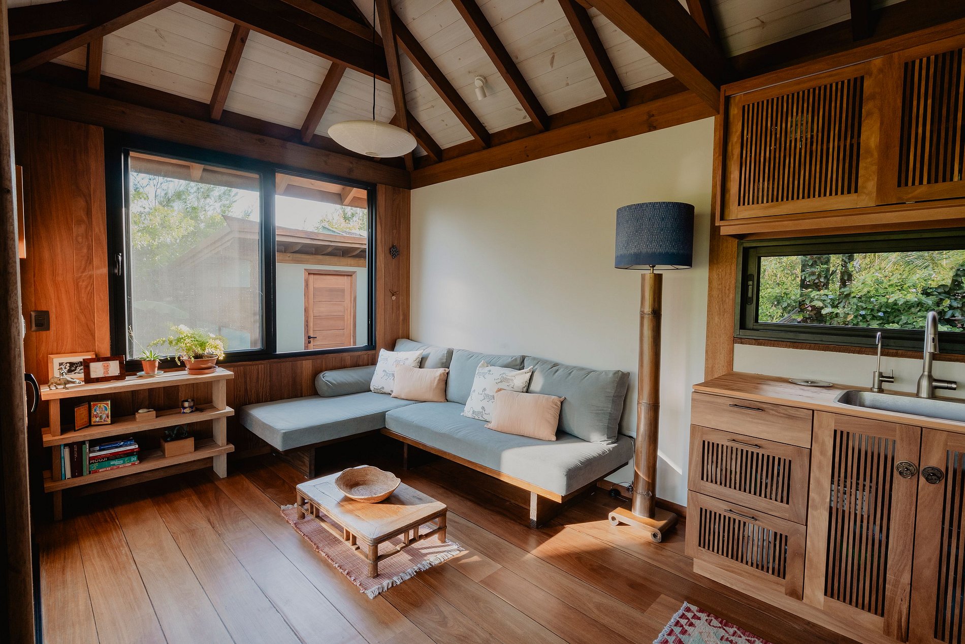 A poucos passos da praia, a Casa Naami é uma tiny house pensada para desacelerar. Totalmente ecossustentável, funciona com energia solar e utiliza água da chuva filtrada, oferecendo conforto com consciência.